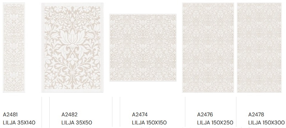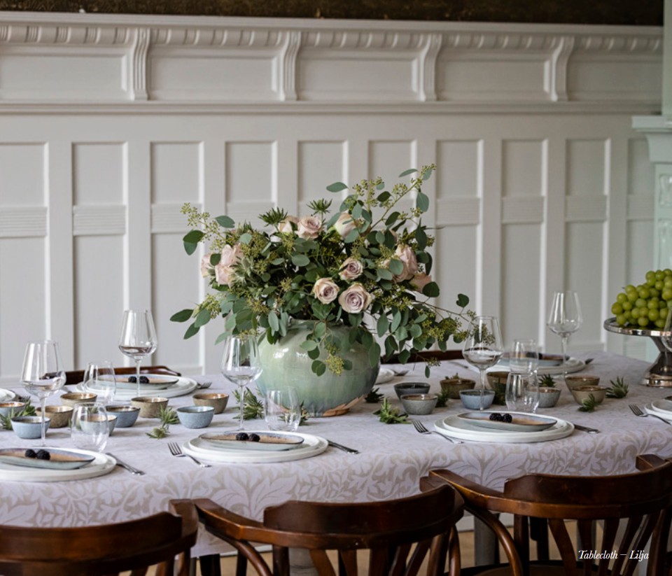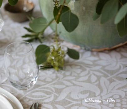 - Lilja, tafellinnen, 55% katoen / 45% linnen, jacquard weving, Ekelund (Zweden)